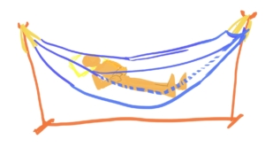 ハンモックに斜めに寝ている人の図